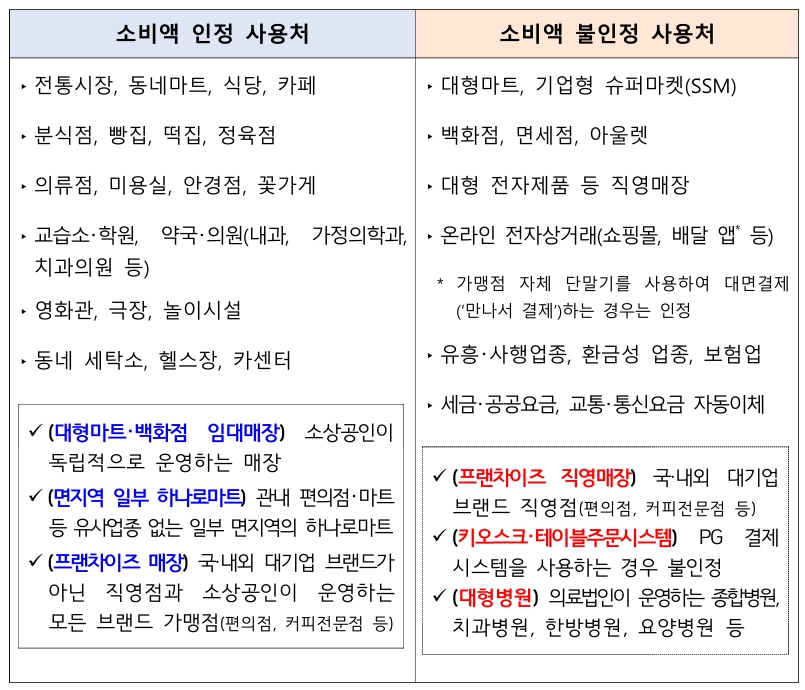 다만, 백화점 내 소상공인이 독립적으로 운영하는 매장은 인정 가능성이 있으니 결제 전 매장 운영 형태를 확인하는 것이 좋습니다.