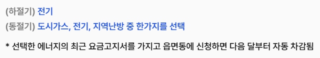 - 동절기 요금이 제일 많이 나오는 에너지를 선택하여 신청