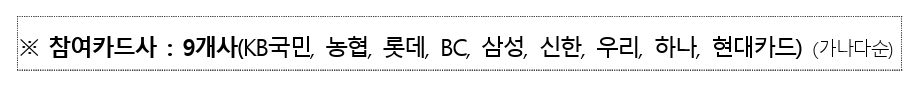 법인카드, 가족카드, 선불카드, 바우처 전용카드 등은 안 됩니다.