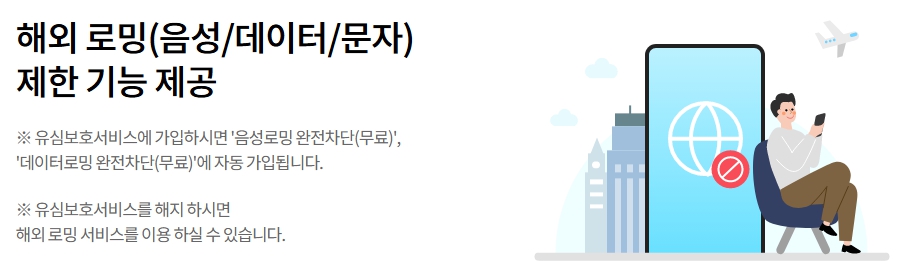 해외에서의 유심 사용을 원천적으로 차단해 해외 유심 도용 및 고액 요금 부과를 방지합니다. - 무료 제공
